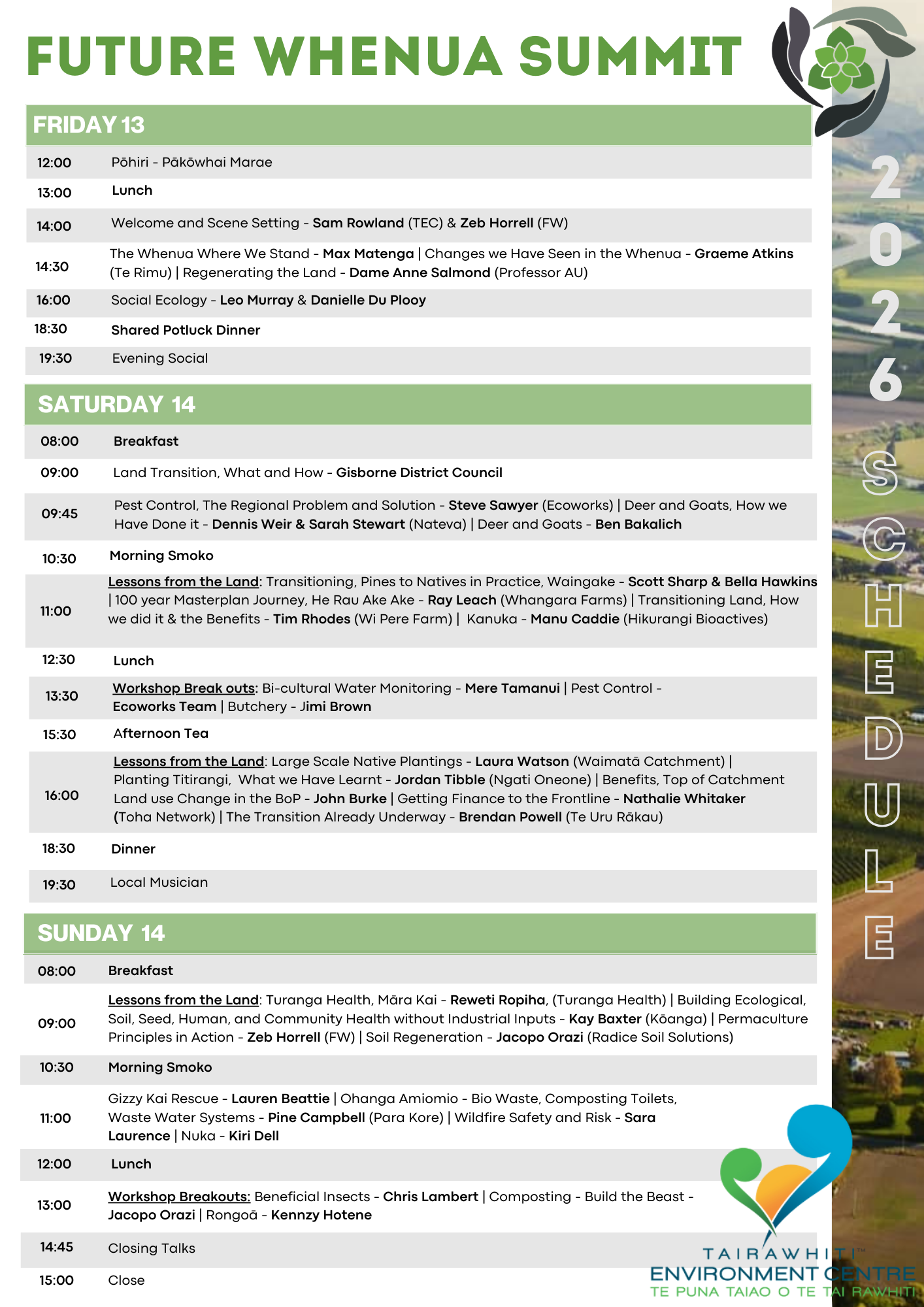 By convening this summit here, we aim to celebrate and support the region's leadership in sustainable land management, while fostering collaborative solutions that can be models across Aotearoa.